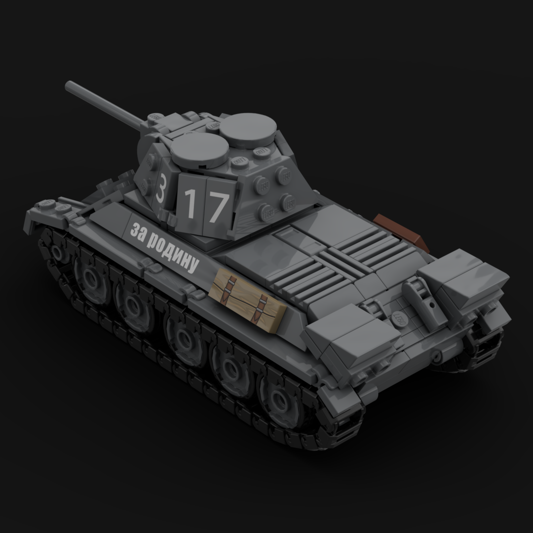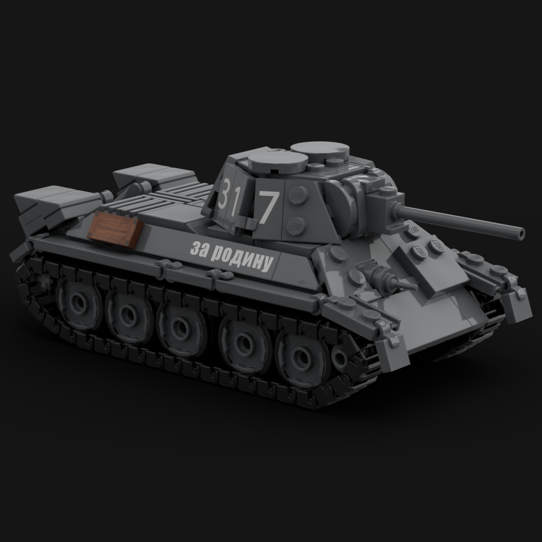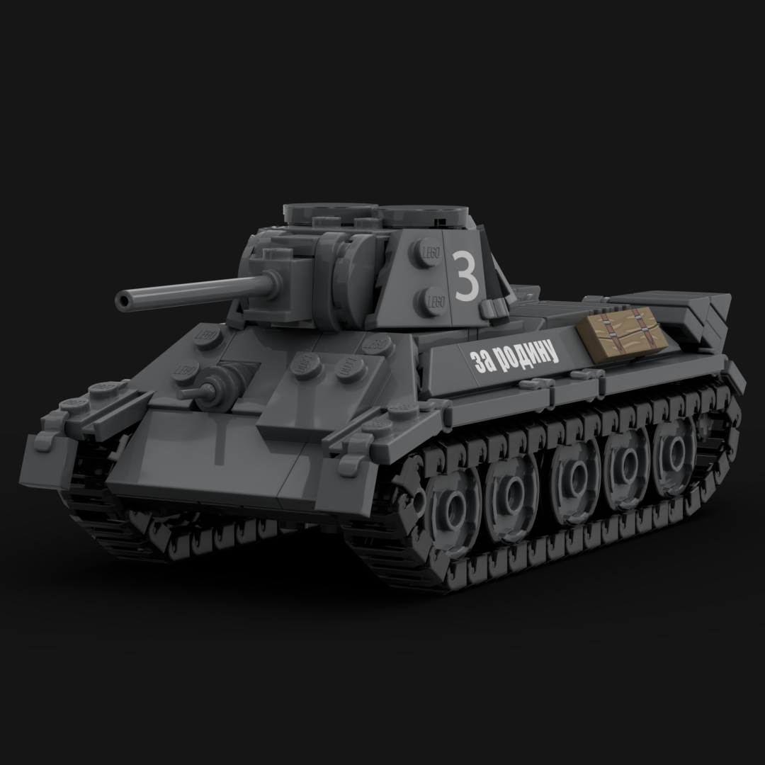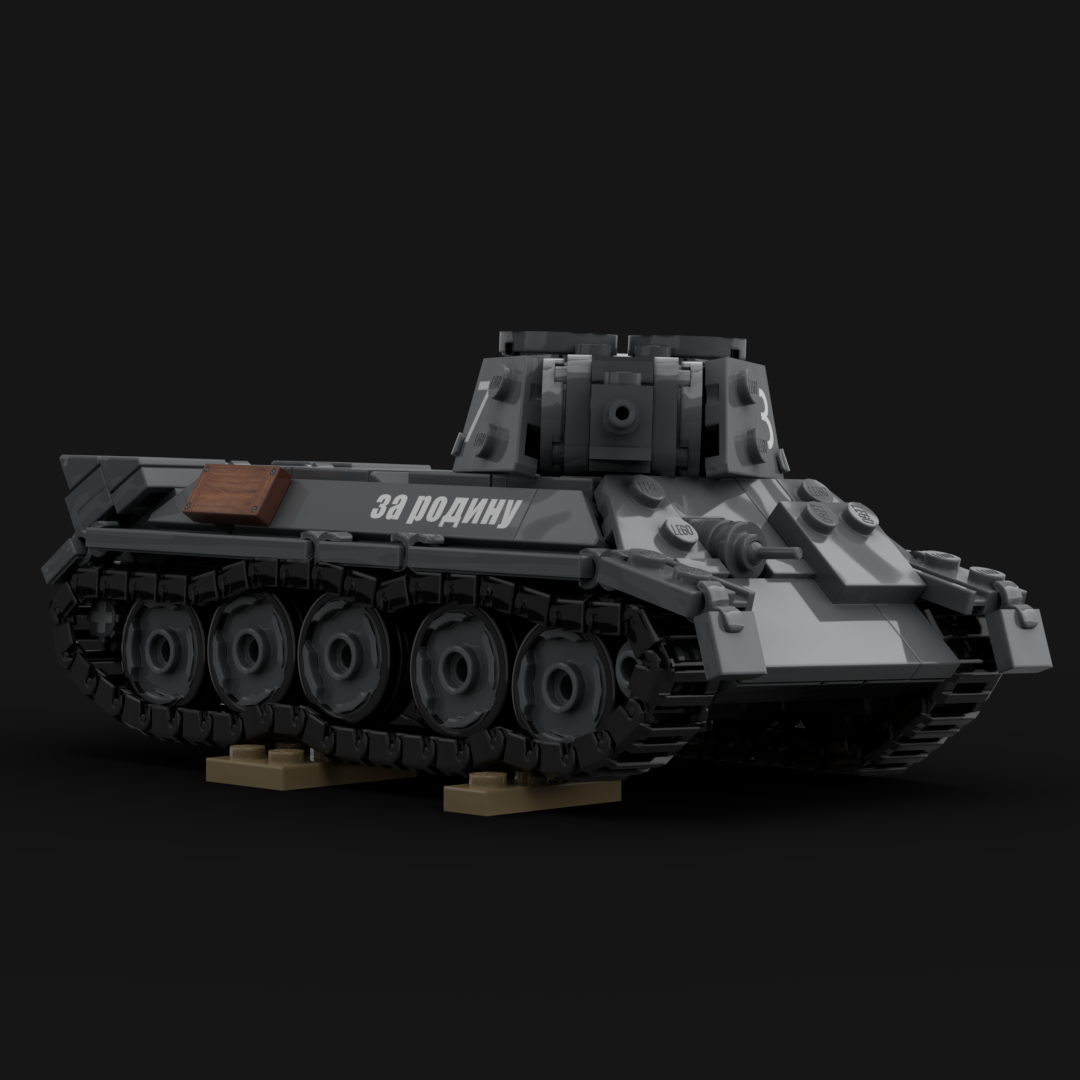 Der T-34/76 Modell 1942 war eine weiterentwickelte Variante des bereits bewährten sowjetischen T-34 und stellte eines der wichtigsten Kampfmittel der Roten Armee im Zweiten Weltkrieg dar. Durch eine vereinfachte Fertigung, verstärkte Panzerplatten und einen neu konstruierten, sechseckigen Turm („Zapfwellenturm“ oder auch „Micky-Maus-Turm“ bei späteren Versionen) konnte der Panzer in großen Stückzahlen hergestellt werden. Der T-34/76 von 1942 war mit einer 76,2-mm-Kanone F-34 ausgestattet, die sowohl gegen feindliche Panzer als auch gegen Feldstellungen wirksam war. Sein zuverlässiger V-2-34-Dieselmotor ermöglichte eine Höchstgeschwindigkeit von etwa 50 km/h. Auf den Schlachtfeldern der Ostfront galt der T-34 als robust, mobil und im Winter besonders überlegen, da breite Ketten und eine einfache Konstruktion den Einsatz unter extremen Bedingungen erleichterten. Trotz begrenzter Sichtmittel und enger Platzverhältnisse im Turm erwies sich der T-34/76 Modell 1942 als Rückgrat der sowjetischen Panzertruppen und spielte eine entscheidende Rolle in den Abwehr- und Gegenoffensiven ab 1942.